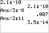 Je kunt grote en kleine getallen in je GR invoeren met [EE]. Hieronder zie daar een aantal voorbeelden van: